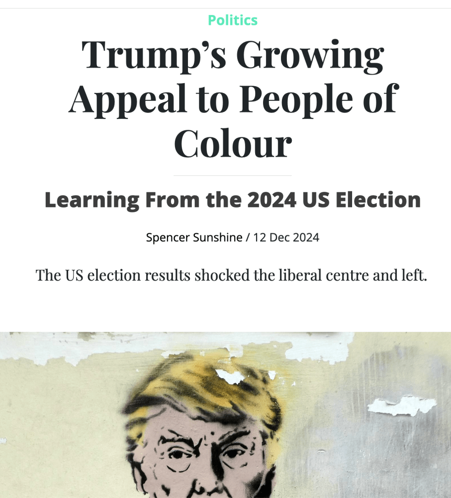 i have a new piece up at The Battleground about POC Trump voters. Despite claims that the 2024 results were merely because of economic issues or a ‘desire for whiteness,’ all POC groups have shifted further right in the last three elections.